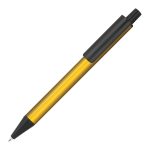 Ball pen made of aluminium in great metallic colours and blue writing large capacity refill. We engrave your logo next to the clip.