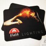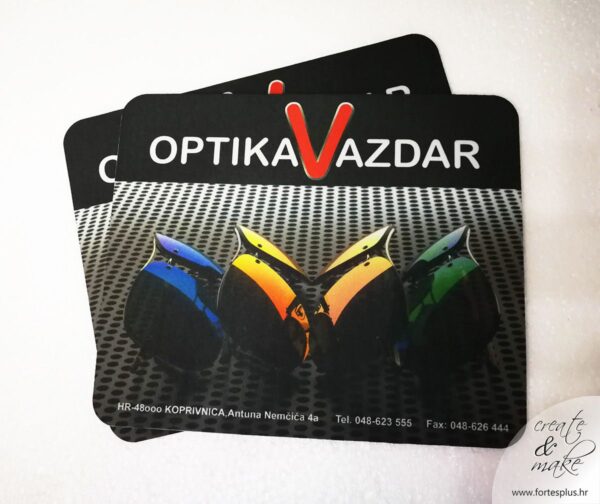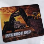 Podlogu za miš radimo od protuklizne pjenaste gume koja na gornjoj strani ima bijelo sjajno platno na koje otiskujemo vizuale po želji.