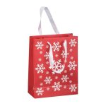 Christmas gift bag made of paper with snowflake design and two handles. We will print your advertising on a label.