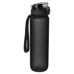 Leak-proof, BPA free, plastic, sports drinking bottle with lockable lid, hand strap and a filling capacity of 1.000 ml. Your logo will be printed on the bottle.