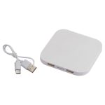 Plastic wireless charger with 2 USB ports, charging cable included. Charges all QI enabled smartphones. Your advertising will be printed on the device.